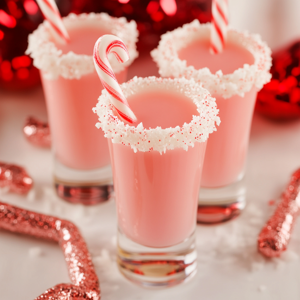 - Crushed candy cane rim – Dip the rim of each shot glass in water and then into crushed candy canes for a sweet and festive touch.