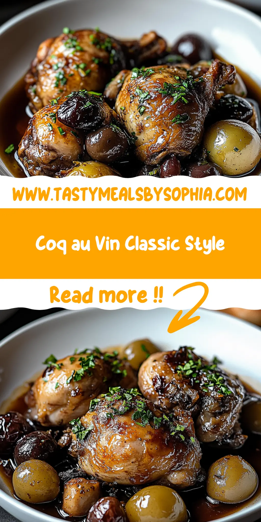In summary, Coq au Vin Classic Style is not only a delicious and hearty meal but also a delightful experience in cooking. Its robust flavors and tender chicken make it a standout dish worthy of any table. With its straightforward process, you can create a gourmet meal that impresses family and friends alike. Whether you choose to savor it fresh or enjoy the leftover magic the next day, this recipe is a timeless classic that you’ll want to return to again and again. Embrace the joy of cooking and make Coq au Vin Classic Style your next culinary adventure!