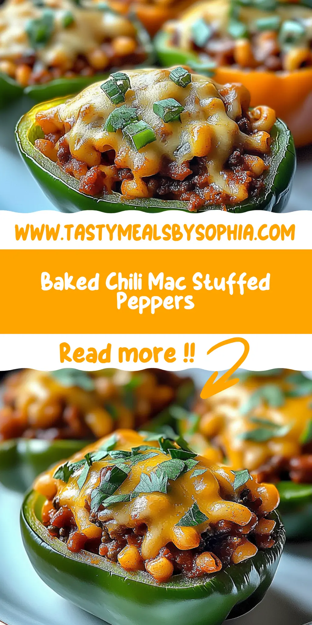 Try these delicious Baked Chili Mac Stuffed Peppers, a comforting blend of chili and mac and cheese in colorful bell peppers.