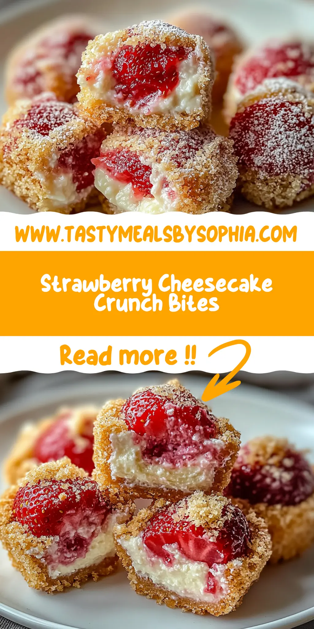 In summary, Strawberry Cheesecake Crunch Bites are a fantastic treat that brings together delightful textures and flavors in a convenient, bite-sized form. The combination of creamy cheesecake filling and crunchy graham cracker crust makes for an irresistible dessert option that can be enjoyed for various occasions. Whether you’re entertaining guests or satisfying your sweet tooth, these delightful bites are sure to impress. Don’t miss out on the chance to indulge in these scrumptious Strawberry Cheesecake Crunch Bites!