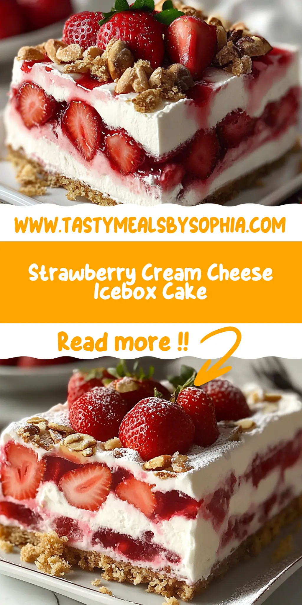 In conclusion, the Strawberry Cream Cheese Icebox Cake is a showstopper that’s both simple to prepare and stunning to serve. With layers of fresh strawberries, light cream cheese filling, and a crunchy graham cracker base, it’s a dessert that offers a perfect balance of flavors and textures. Remember to chill it well for optimal enjoyment. This delightful Strawberry Cream Cheese Icebox Cake is sure to leave your guests asking for more, making it a must-try for any gathering. Treat yourself and your loved ones to this luscious dessert that brings joy, flavor, and sweet memories.