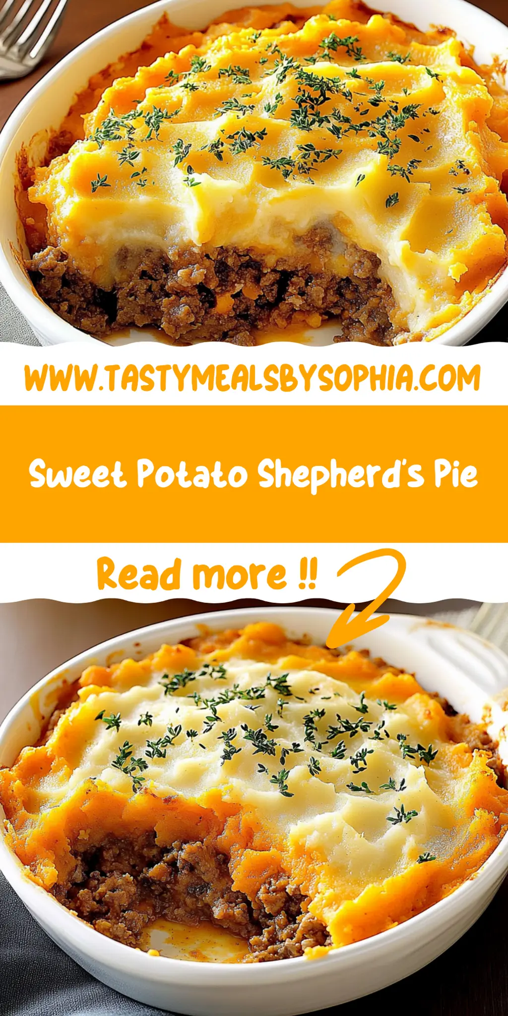 Delight in this Sweet Potato Shepherd's Pie, a comforting twist on a classic featuring creamy sweet potatoes and savory meat.
