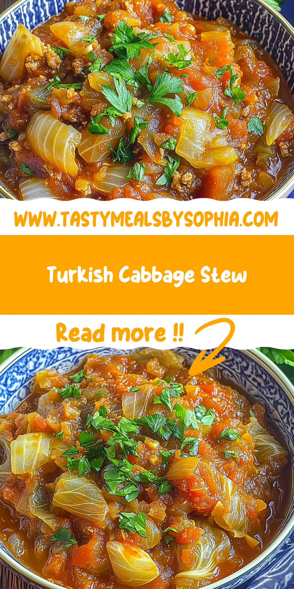 Turkish Cabbage Stew is a comforting dish combining ground meat, cabbage, and spices for a hearty meal.