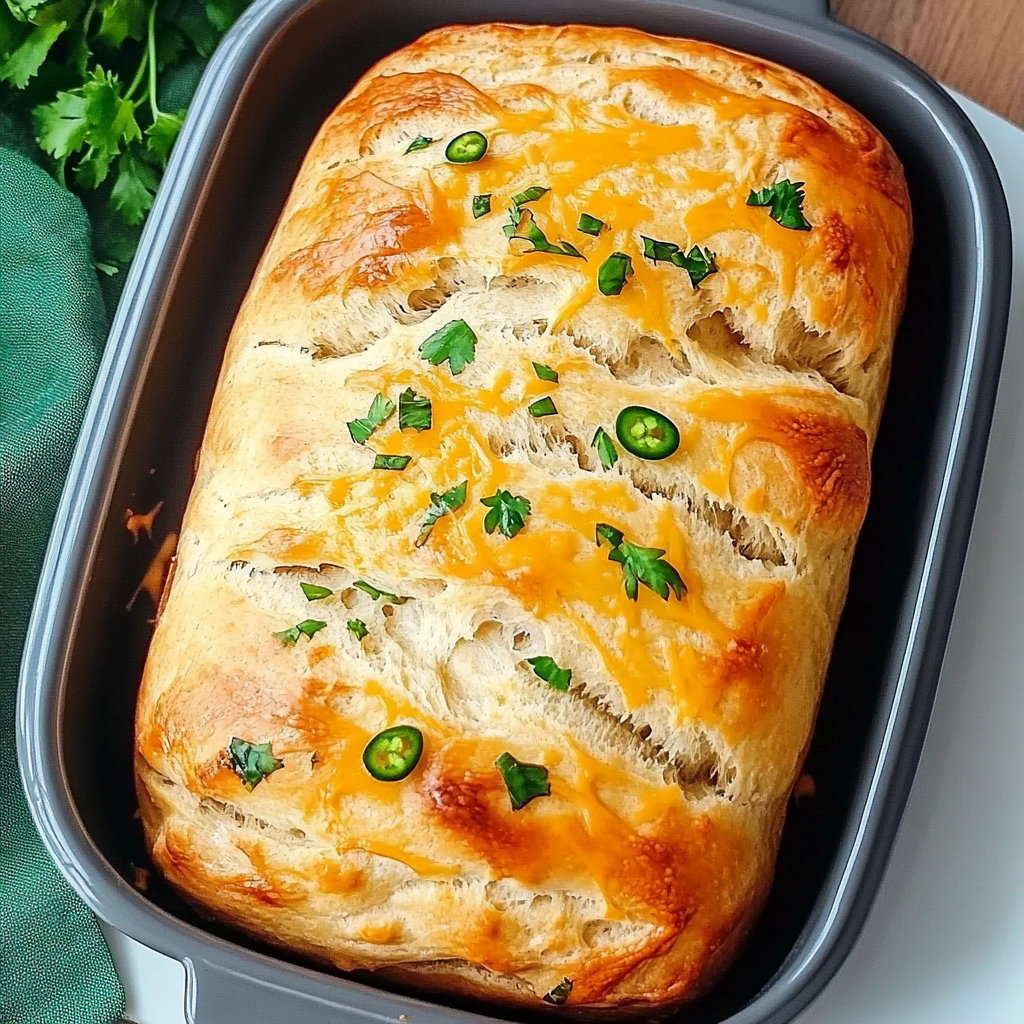 I hope you feel inspired to bake this delicious Garlic Herb Jalapeño Cheddar Bread! It’s not just a recipe; it’s a wonderful way to share joy and warmth with those around you. Whether enjoyed fresh out of the oven or as part of a meal prep plan, this bread is sure to become a favorite. Happy baking, and don’t forget to share your creations with friends and family!