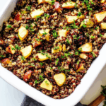 If you’re looking for a stuffing that’s bursting with flavor and surprises, then you’ve found it! This Herbed Wild Rice Quinoa Stuffing is a beloved dish in my kitchen. It’s packed with wholesome ingredients like fresh herbs, crisp apples, tart cranberries, and crunchy pecans. What makes this recipe even more special is that it’s vegetarian, vegan, AND gluten-free! It’s perfect for busy weeknights or festive family gatherings where everyone can enjoy a hearty, delicious dish—without any of the fuss.