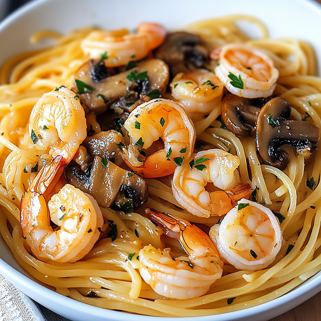 Mushroom Garlic Shrimp Pasta