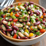 - Pour the dressing over the bean mixture and gently toss to coat.