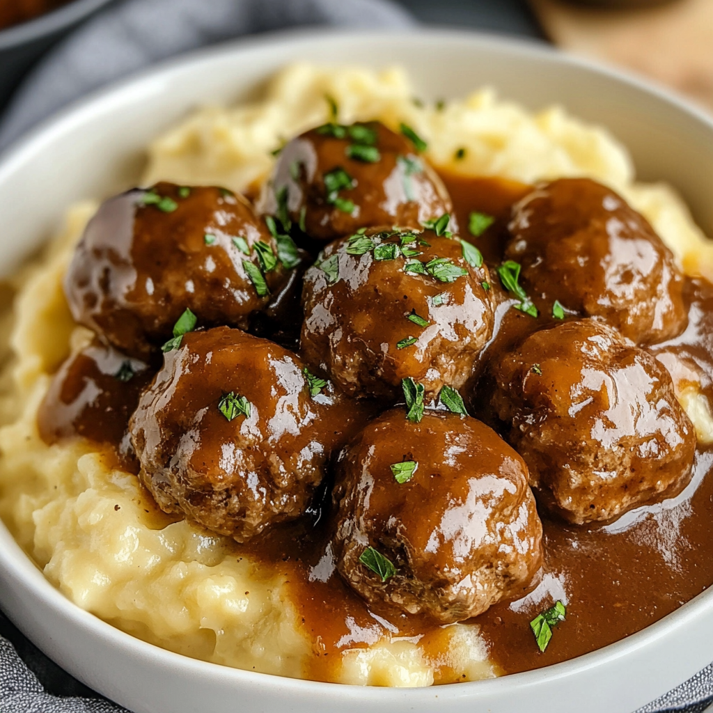 Once thickened, serve these Salisbury steak meatballs over mashed potatoes, rice, or egg noodles. Each serving is like comfort food on a plate—a perfect way to end your day! Enjoy every bite with family or friends; they’re sure to ask for seconds!