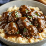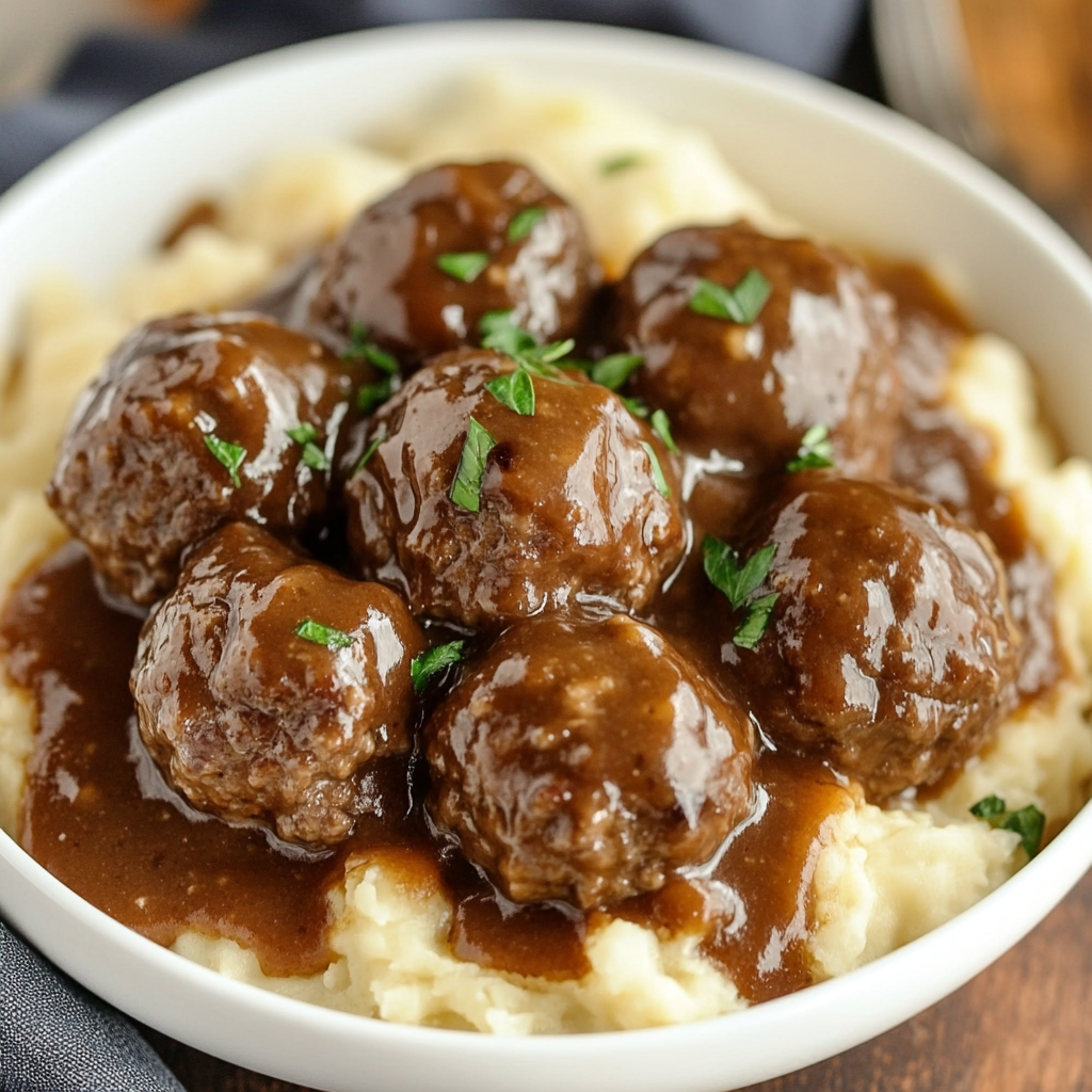 - Family-Friendly: Kids and adults alike will love these savory meatballs smothered in gravy.