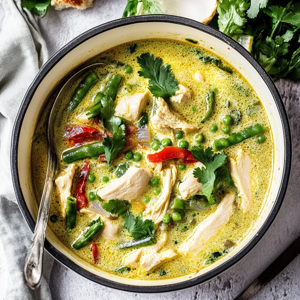 But oh boy, was it worth every messy moment! The final result is nothing short of spectacular: a fragrant and spicy Thai Green Chicken Curry that’s rich and silky, with tender chicken pieces swimming in a luscious sauce that just begs for some fluffy rice to soak it all up. The explosion of flavor hits all the right notes—spicy yet comforting—and I can proudly say it’s become one of my favorite go-to meals. So grab your ingredients, roll up those sleeves, and let’s dive into this delicious adventure together—I promise you won’t regret it!
